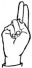 На ћирилици написано ЛУКА МИЛОШИЧЕВИЋ састоји се из 15 слова [?]. Исписано ћириличном једноручном азбуком за глувонеме: